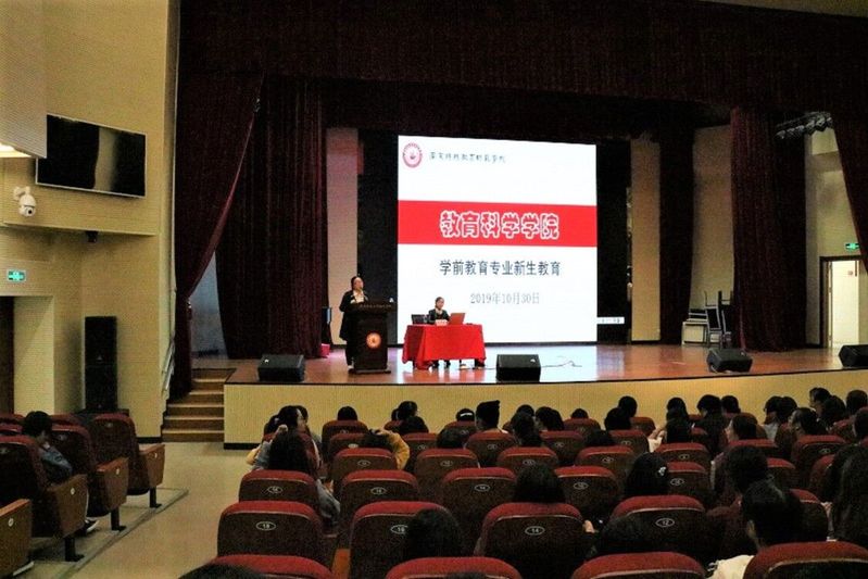 1030日晚上,为帮助2019级学前教育专业新生深入了解专业学习,树立专业思想,beat365亚洲体育官方网站对2019级学前教育专业新生开展专业思想教育。本次讲座由公司副经理张丽莉老师主讲,2019级辅导员高亚丽老师主持,公司2019级学前教育专业全体员工参加。