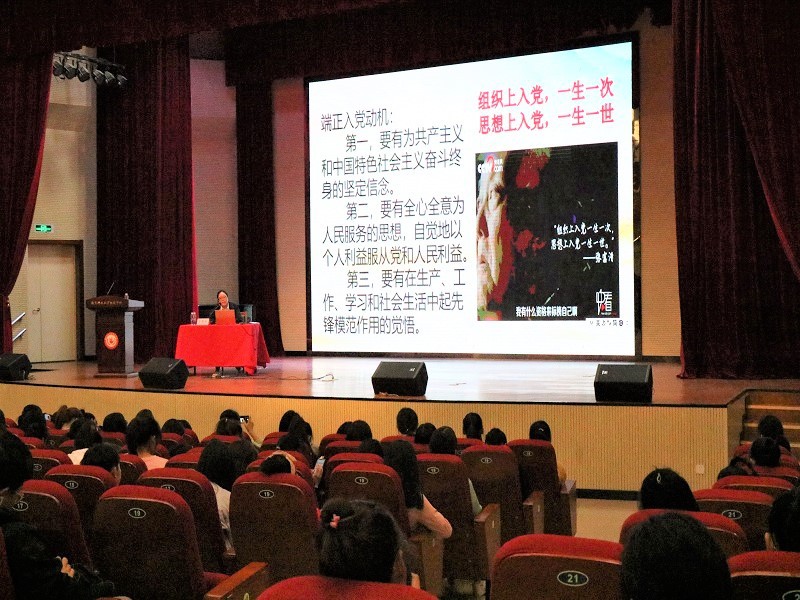 高老师主要围绕“中国共产党的初心和使命”、“端正入党动机”、“老员工入党的标准及条件”、“发展老员工党员的工作流程”四部分内容展开。首先,高老师带领同学们了解和感受,中国共产党的初心和使命就是“为中国人民谋幸福,为中华民族谋复兴”,并结合老一辈艺术家牛犇的入党追求,明确“组织上入党,一生一次;思想上入党,一生一世”。高老师强调,青年老员工应当追问自己的入党初心,明确自己的政治追求。针对同学们是否了解和熟悉政治面貌类别,高老师在现场和同学们积极互动,并分析了老员工常见的入党动机,希望同学们要端正入党动机,担当使命责任。其次,高老师结合老员工入党标准及条件,给同学们详细进行解读,帮助大家明晰入党程序。最后,高老师就如何书写入党申请书为同学们解惑,指出在书写过程中应注意的几点问题,希望同学们要认真严肃对待,积极党组织靠拢。
