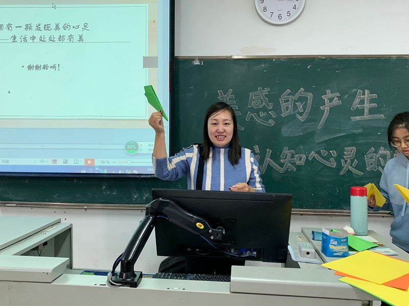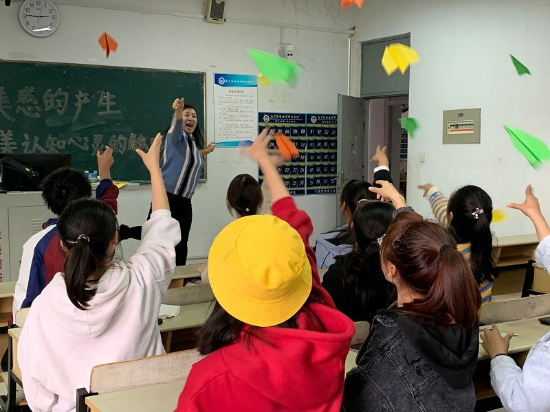 讲座结束之际,刘教授教同学们折起了纸飞机,通过放飞纸飞机,同学们更真切地感受到了生活的美。最后,刘迎杰副教授对讲座进行总结,她和同学们分享了她的人生格言:“拥有一颗发现美的心灵,生活中处处都有美”讲座在同学们热烈的掌声中圆满结束。