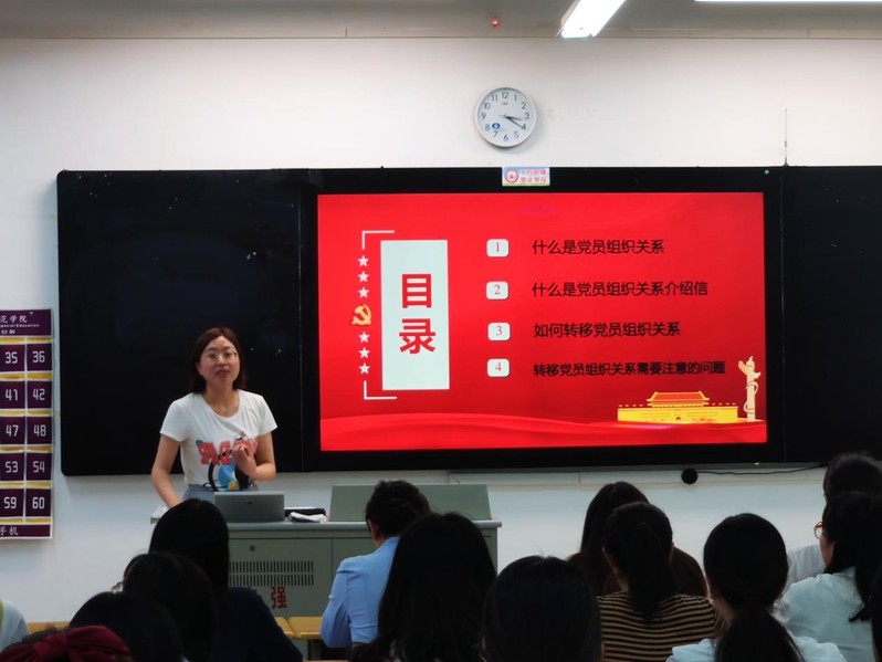 会议一共分三个部分,一是学习党的理论知识,领悟习近平总书记重要讲话精神;二是介绍员工党组织关系转接相关事宜;三是教科公司党总支书记张启昕书记致辞。首先由员工代表16级卓越班汪双寅同学带领全体毕业生党员一起系统学习了两会精神,其中包括两会的七大看点以及热点关键词,并提炼出教育关键词进行重点学习,如“稳就业”、“扩招生”、“提质量”、“保公平”、“减负担”、“强职教”、“促均衡”、“战疫情”等。紧接着由汪亮巧老师从四个方面介绍党组织关系转接的事宜:什么是党员组织关系、什么是党员组织关系介绍信、如何转移党员组织关系、转移党员组织关系需要注意的问题,为毕业生党员即将开始的党组织关系转接工作做了详细的讲解,也为接下来的工作做了细致的安排。最后张启昕书记作讲话,希望全体毕业生党员站好最后一班岗,配合老师把同学们安全送离校园,坚守到最后。并且勉励全体毕业生党员不断加强政治思想建设和理论学习,无论身处何地、位在何职都要始终牢记党员身份,勇于承担使命和责任,做到一个党员一面旗帜。