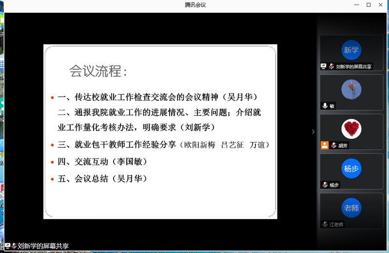 首先,党总支吴月华书记传达了近期校就业工作检查交流会的会议精神及最新要求。然后,刘新学经理在对校就业工作量化考核办法,就业工作指导等文件精神进行深入解读的基础上,结合公司就业工作包干以来的进展及问题,提出了几点明确要求。接着,欧阳新梅老师、吕艺征老师和万谊副经理也积极分享开展就业包干的经验,特别是在关心员工、就业帮扶等方面的做法,让现场每位教师深受启发。学工办李国敏老师作为毕业班辅导员,就员工在就业过程中经常遇到的问题和最新就业政策作了简单的介绍,以进一步帮助就业包干教师推进辅导工作。