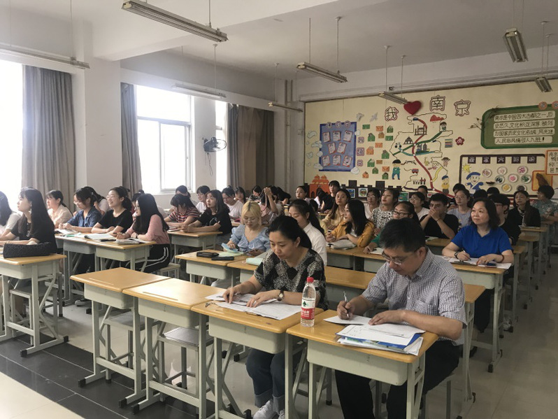 课堂上,去年新入职的吕文超老师正在讲《学前儿童语言教育》,从员工们专注的眼神和积极互动看得出吕老师课前准备充分,讲课情绪饱满。王书记聚精会神地听课,不时地写着笔记。课后王书记对吕老师的授课进行了全面点评,充分表扬优点,也提出了进一步完善的针对性建议。