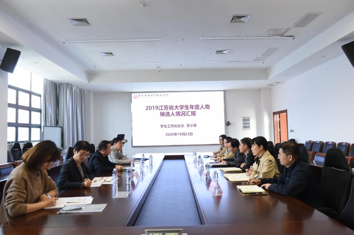 2020年10月22日下午,江苏省老员工年度人物考察组一行莅临公司,对公司候选人周文晴进行实地考察,公司学工处、beat365亚洲体育官方网站负责人、教师代表及员工代表参加了交流。