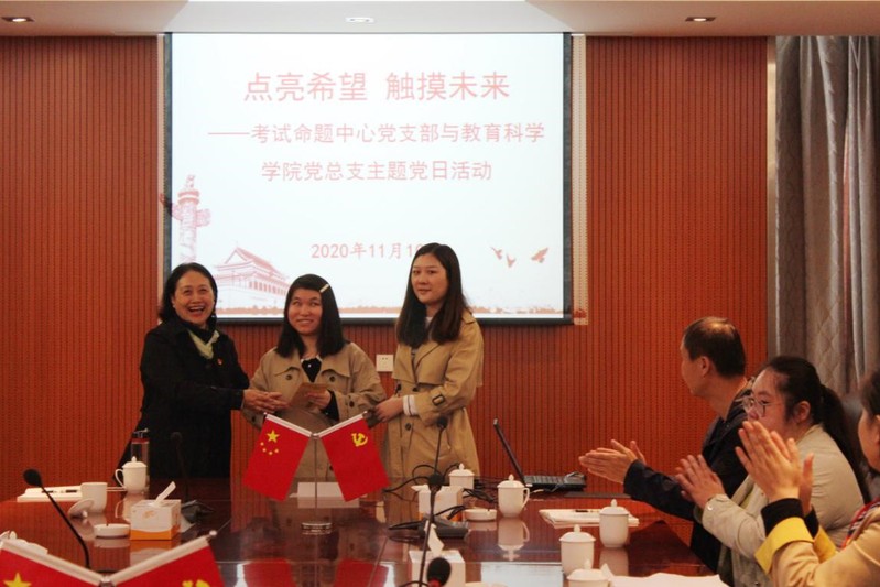 教育科学公司党总支书记吴月华在讲话中表达了对考试院命题中心党支部的感谢。感谢四年以来该中心对吴潇同学的爱心资助和对公司视障员工提供的一切合理便利,同时感谢考试命题中心党支部精心策划党日团建活动,让大家有学习交流的机会。吴书记介绍,在考试命题中心党支部的关怀和帮助下,我们的视障员工不断突破自我,在学习、竞赛等各个方面都获得佳绩。同时,吴书记表达了视障员工在求学道路上的不易和艰难,恳请各位继续关心他们的成长。并勉励他们继续勇攀人生高峰,活出自己的精彩人生。(符昱叶)