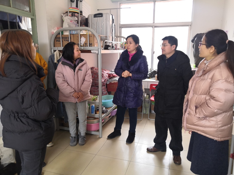1月25日下午,教育科学公司党总支书记吴月华、副书记吴兴、学工办主任李国敏以及辅导员汪亮巧、杨步前往员工宿舍看望2017级留校考编同学,关心她们的留校生活、学习情况并了解同学们的后续返乡事宜。