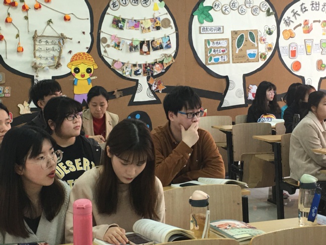 本学期的课程思政系列教研活动首先从两位新进的年轻教师专业课程开始。他们开设的学前融合教育和学前儿童科学教育两门课程围绕课程思政进行有益探索,公司领导高度重视全程参与课堂听课,院督导及教师们也积极参加听课。课后教师们围绕专业课程中思政元素的挖掘和渗透等方面各抒己见,进行了热烈讨论并提出了很好的建议。
