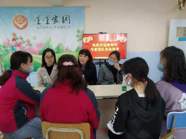 此次志愿服务分为两个环节。第一环节是为康复机构的教师和家长提供专业指导。通过座谈和现场指导的方式,与机构教师和家长面对面交流,了解他们目前遇到的困惑,有针对性的进行专项的指导和答疑,并就如何缓解儿童的情绪、家园如何有效合作等内容进行了深入探讨。
