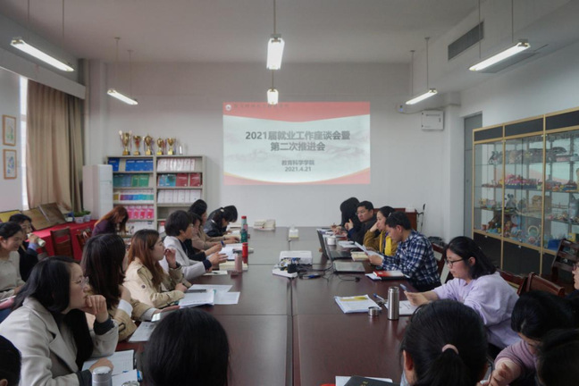 4月21日下午,beat365亚洲体育官方网站在博雅楼3401召开2021届毕业生就业工作座谈会暨第二次推进会,针对毕业生择业就业问题进行交流讨论。本次会议由公司党总支副书记吴兴主持,公司党总支书记吴月华、经理刘新学、全体毕业班班主任以及就业包干老师参加了会议。