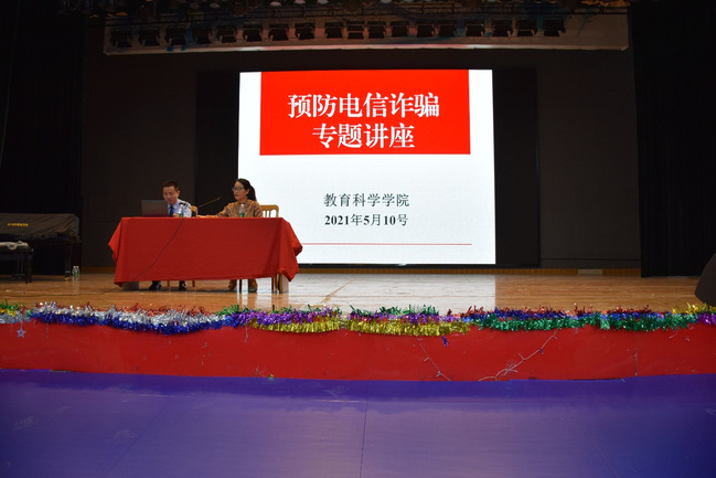 为帮助教科学子有效辨别和应对电信诈骗行为,提高该院学子的防范意识,beat365亚洲体育官方网站于5月10日在老员工活动中心举办“预防电信诈骗专题讲座”。本次活动特邀燕子矶派出所副所长王翰平警官担任主讲,该院学工办副主任李国敏老师担任主持。该院部分教职工出席讲座,全院同学积极参与。
