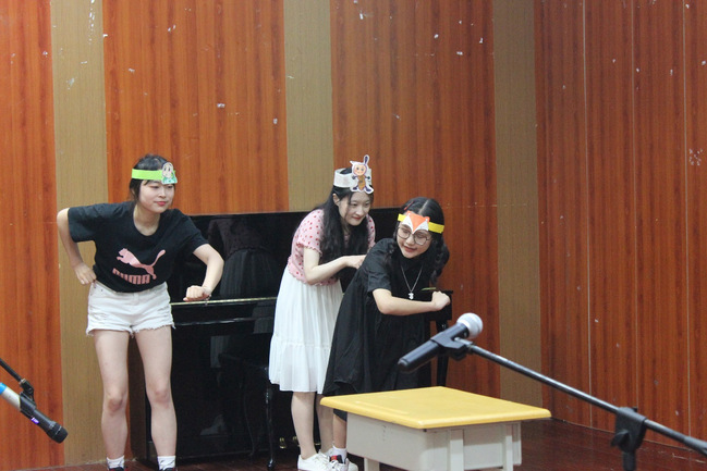 本次活动分为两个环节,第一个环节由优秀选手进行师范生教学技能展演。故事表演、歌曲弹唱、模拟授课、红色舞台剧等节目一一展演。红色舞台剧《朱德的扁担》向观众展现了以身作则、吃苦在前的红军指挥官朱德同志的形象,也表现了战士们对朱德同志的关心、敬爱之情。幼儿故事表演《蚂蚁、乌龟和狐狸》,用精彩的故事表演带观众们身临其境地感受到了小动物之间的情感;歌曲弹唱《亲爱的旅人啊》,将歌曲送予即将步入社会的学长学姐们,以四年在校时间为点,为学长学姐们献上祝福;模拟授课将师范生基本技能融于课堂,通过一堂生动的模拟课程,向在场的观众展现了如何教导幼儿利用石头、沙子等素材装满瓶子;舞蹈《向阳》,表演者一步一动,用身体讲述希望的故事。