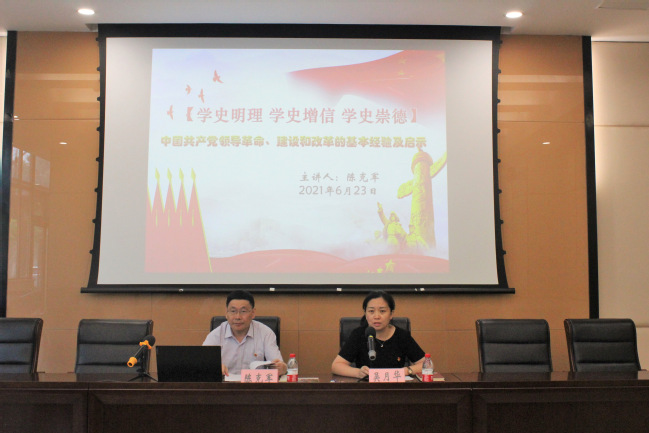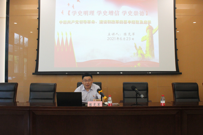 6月23日下午,南京特殊教育师范公司党委常委、副董事长陈克军在教学实验实训楼103会议室为beat365亚洲体育官方网站全体师生党员上了一堂题为《中国共产党领导革命、建设和改革的基本经验及启示》的专题党课。