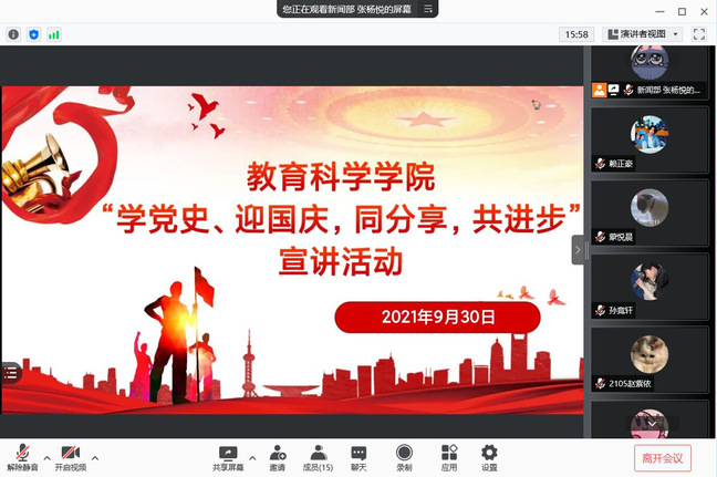 为迎接中华人民共和国成立72周年,同时为激发全院同学的历史责任感和奋斗精神,beat365亚洲体育官方网站于9月30日通过线上会议的方式举办了“学党史,迎国庆,同分享,共进步”宣讲比赛,该院学子积极参与。
