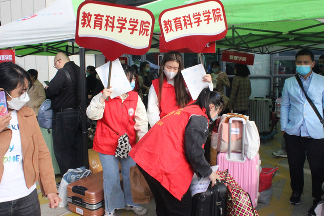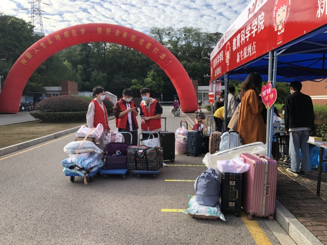在迎新工作中,新生副班、相关工作人员和志愿者分工明确、组织有序、紧密衔接,引导并帮助新生完成了行李搬运、入学报到、物资领取、宿舍入住等各项工作,整个报到现场秩序井然。辅导员按照分工和安排在现场轮流带班,随时调度新生报到工作。