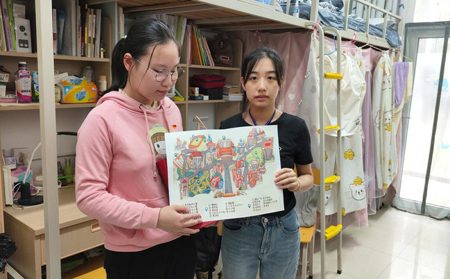 报到当天,花锐同学在公司志愿者的陪同下做完核酸检测后,到达公司新生接待点。视障生党员颜鹂苇将公司定制的大字号版校园手绘地图、暖心水壶和护眼台灯交到花锐手上,欢迎她成为南京特师beat365亚洲体育官方网站的一员。颜鹂苇说:“当时我们也是在周文晴她们几位学姐的帮助下熟悉校园,现在我也非常愿意带领新同学认识公司,也欢迎新同学成为我的舍友,一起学习,共同进步!”