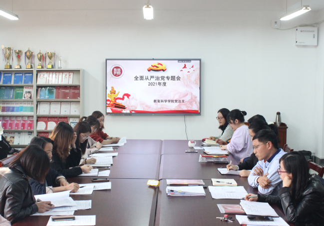 10月27日下午,教育科学公司党总支在博雅楼3401会议室召开全面从严治党工作部署会,会议由公司党总支书记吴月华主持。