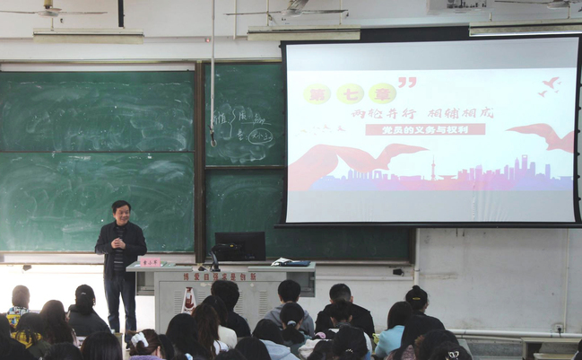 明确思想,牢记使命。南京师范大学特邀讲师洪光东的授课主题为“党的指导思想”。洪光东老师向同学们生动形象地讲解了党的指导思想是党的政治制度建设和反腐倡廉建设的理论基础。坚定不移地贯彻党的指导思想,开拓创新,不断前进,将有力地保证中国共产党始终站在时代潮流的前端,永葆生机和活力。洪光东老师的授课字字珠玑、深中肯綮,引导同学们深刻认识到中国共产党指导思想的内涵,走中国道路,弘扬中国精神,凝聚中国力量,必将实现中华民族伟大复兴的中国梦。
