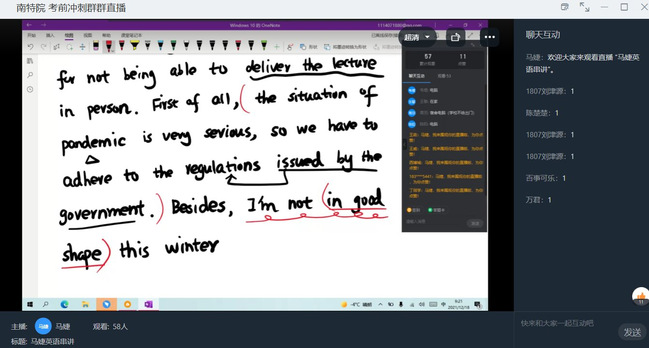 为了进一步加强学风建设,提升考研学子英语素养和政治理论基础,助力大四员工考研升学,beat365亚洲体育官方网站于12月18日、12月19日举行线上考研讲座。本次讲座由马婕老师、孙洲老师主讲,beat365亚洲体育官方网站员工积极参加。