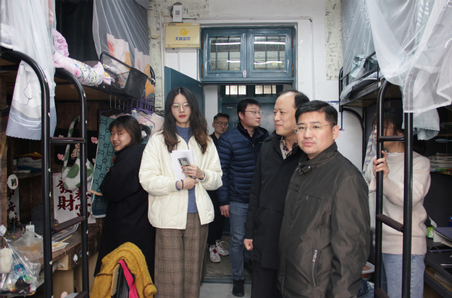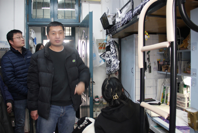 检查组一行深入员工宿舍,逐一查看同学们的住宿设施,了解同学们的适应程度,并亲切询问他们的学习生活情况。首先,对宿舍的文化装饰提出建议,要求同学们重视宿舍的学风建设,文明张贴格言警句,营造良好的学习氛围,鼓励宿舍同学在学习上互相帮助、齐头并进,保障良好学风的形成。其次,检查组一行亲切地与同学们交流宿舍生活情况,并嘱咐同学们早睡早起,加强体育锻炼,养成健康的生活习惯,注意个人卫生、及时开窗通风,重视宿舍整体风貌。再次,针对冬季宿舍安全用电问题,检查组叮嘱同学们注意用电安全,不使用大功率电器,虽天气寒冷但决不能掉以轻心。检查组成员认真检查员工宿舍楼道里的电箱、电线等设施,防患于未然。在走访18栋员工宿舍时,检查组发现水龙头滴水情况,细心向员工们讲解如何申报维修,并及时向相关维修管理人员反映问题。此外,检查组成员重点叮嘱同学们要提高防诈骗意识,捂好自己的钱袋子,警惕各种骗局。