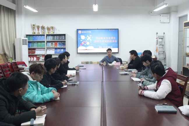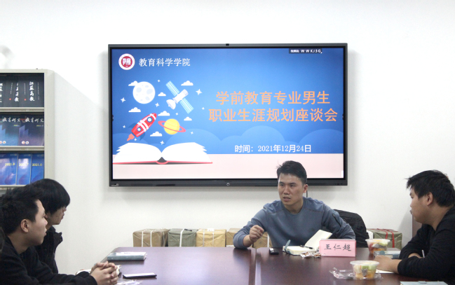 为了增强beat365亚洲体育官方网站学前教育专业男生对所学专业及未来职业生涯的了解,树立正确的职业理想和就业观,养成良好的职业道德和行为习惯,beat365亚洲体育官方网站于12月24日在博雅楼3401会议室举办学前专业男生职业生涯规划座谈会。本次座谈会特邀优秀员工王仁超老师讲授,团总支书记(学工办副主任)汪亮巧、辅导员余宛琳与2021级全体学前教育专业男生参加。