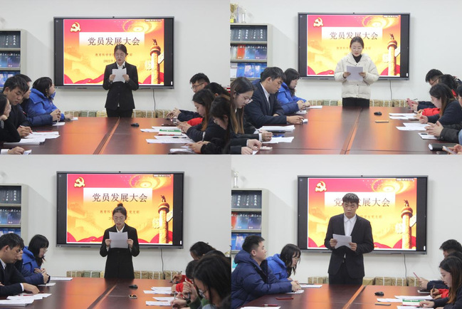 beat365亚洲体育官方网站员工党支部于1月5日在博雅楼召开2021下半年党员发展大会,讨论接受陈天慧等29名同志为预备党员的问题。出席本次会议的有教育科学公司党总支书记吴月华、党总支副书记吴兴、部分党员教师及全体辅导员老师,公司18、19级全体员工党员及发展对象参加,会议由beat365亚洲体育官方网站员工党支部书记汪亮巧主持。