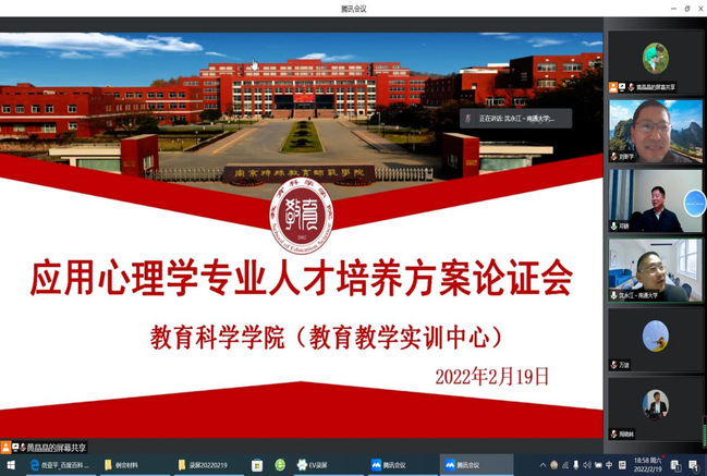 2月19日晚,beat365亚洲体育官方网站应用心理学专业召开了2021版本科人才培养方案论证会。北京大学周晓林教授、南京师范大学邓铸教授、南通大学沈永江教授、苏州昆山骥德儿童康复中心董事长马艳英、公司评估中心万谊主任、beat365亚洲体育官方网站刘新学经理、心理系黄晶晶主任、心理系全体教师及员工代表参与了此次会议。会议由刘新学经理主持。