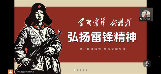 站在“两个一百年”奋斗目标的历史交汇点上,雷锋精神依然闪烁着耀眼光芒,我们身边,“雷锋”的忙碌身影亦随处可见。为深入开展学雷锋活动,大力弘扬雷锋精神,倡导社会文明新风,提升员工的道德素质和文明修养,beat365亚洲体育官方网站于3月5日在线上举办“学习雷锋好榜样——讲讲我身边的‘雷锋同志’”暖心故事分享大赛,21级全体同学积极参与。