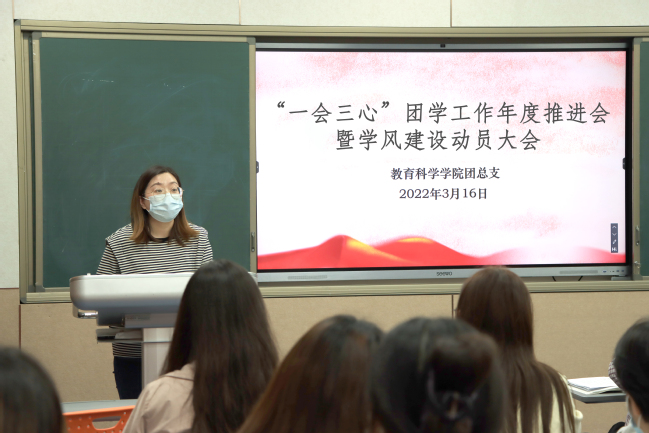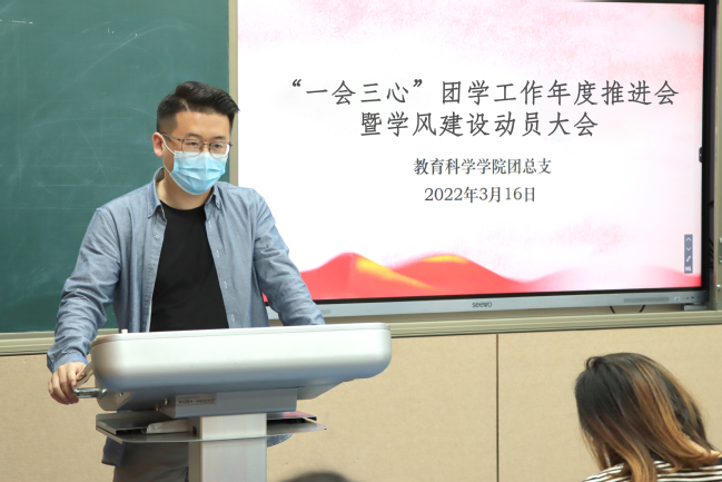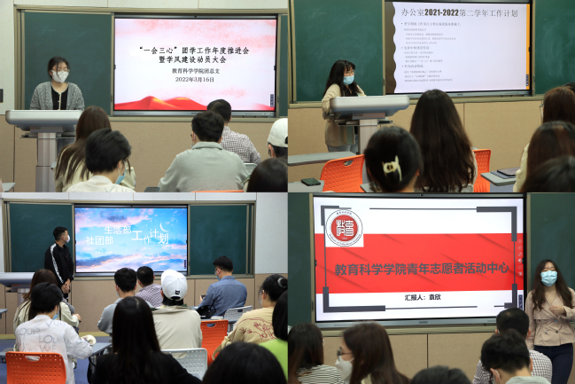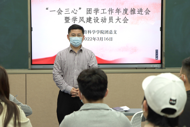 为提高员工干部的工作质量,增强团结合作意识,构建高效、灵活的组织体系,更好地服务于beat365亚洲体育官方网站广大师生,并进一步推进学风建设,全面提高人才培养质量,为公司产品工作营造良好的教风、学风、班风,beat365亚洲体育官方网站于3月16日在博雅楼举办“一会三心”2021至2022年度春学期团学工作推进会暨学风建设动员大会,教育科学公司党总支副书记吴兴、团总支书记(学工办副主任)汪亮巧、“一会三心”指导老师出席本次会议,部分员工代表参加。