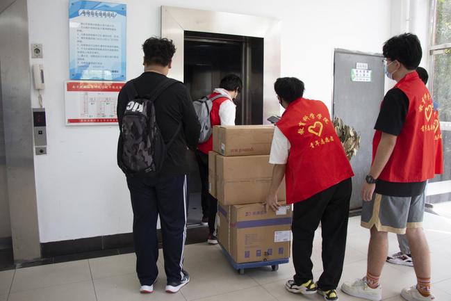 各辅导员老师带领公司员工志愿者进行物品清点和搬运,炎炎烈日也挡不住老师和同学们对防疫工作的热情支持。运输过程中,在公司领导关切及时的指导下,老师和员工互相配合,整齐有序地处理防疫物资。公司各年级班委代表,错时、错峰以班级为单位依次领取物资。发放物资时,刘新学经理亲切地询问同学们当前学习、生活现状,对于同学们上网课的学习效果、课余学习安排尤为关注,悉心的问候缓解了同学们在疫情线上课程期间的不安和焦虑。发放过程中,老师们细心详尽地安排,大大减少了酷热中活动进行的时间;员工志愿者们则不辞辛劳地搬运一箱箱防疫物资,其中装满的是公司领导和老师们对同学们的关切心意;各班员工代表有序排队,领取相应物品,相信现场其乐融融的氛围,一定能够融化疫情“坚冰”,用青春力量建设充满爱的校园。