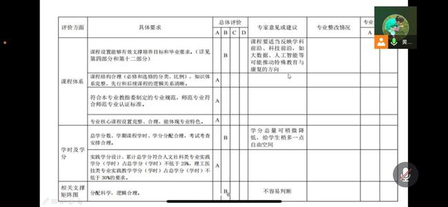 论证会上,黄晶晶主任首先介绍了专家针对2021版人才培养方案课程设置、总学分数及相关支撑矩阵图的意见,随后又就课程结构及学分(时)分布表中实践课时的修订做了详细的说明。