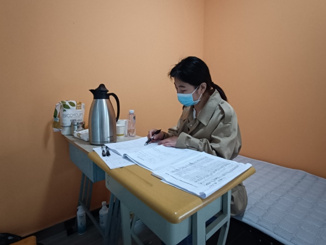 在4月16日、17日的核酸检测中,作为党员的辅导员老师们在接到通知后踊跃报名,冲锋战疫第一线,争当抗疫志愿者。作为采集信息扫码人员,一遍遍重复着相同的动作,无论是核酸检测现场,还是员工隔离点,都能看到他们忙碌的身影。虽然做得是平凡小事,但他们最为可贵的是坚持、落实与行动。