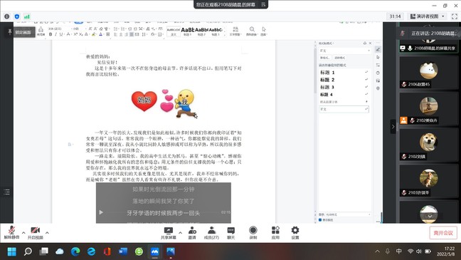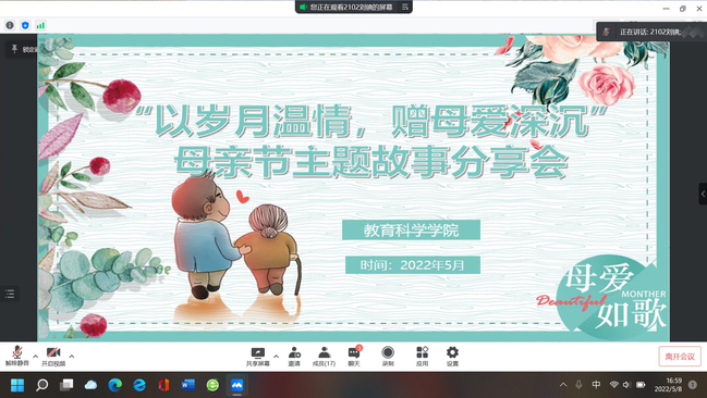 为鼓励同学们学会感恩,珍惜亲情,深入理解母亲伟大而无私的爱,提高家庭和社会责任感,以培育健康心态,塑造健全人格,进一步增强素质教育,弘扬中华民族传统美德,beat365亚洲体育官方网站于5月8日下午举办“以岁月温情,赠母爱深沉”母亲节主题故事分享会,全体员工积极参与。
