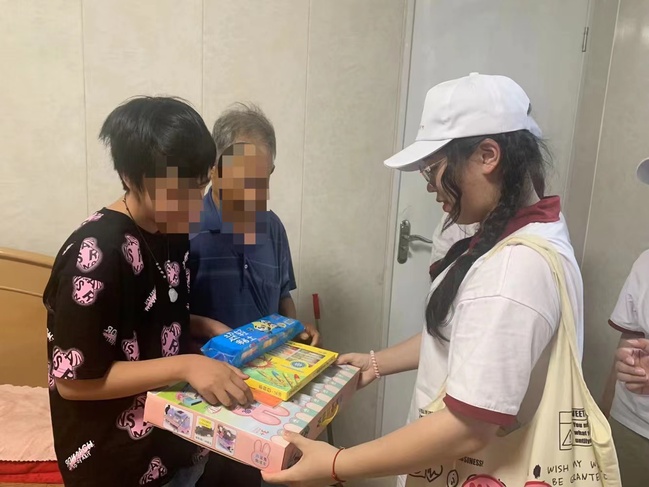 7月10日,“博爱支教行,情牵村童心”实践团队开展了线下调研活动,深入特殊儿童家庭进行访谈交流,给孩子们送去日常生活用品,并与他们沟通交流、玩游戏等。调研中,团队各成员以特殊儿童受教育情况及家庭父母的教育方式为中心进行访问调研。