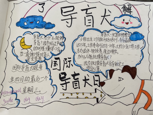小钱老师教授的课程有绘本课《导盲犬斯特拉》《你我如此与众不同》《田鼠阿佛》,健康主题《情绪对对碰》。根据自己的专业优势,在传统绘本课中加入多样延伸活动,同时结合儿童特点设计了情绪管理《情绪对对碰》,通过情绪垃圾桶和情绪之花等设计,帮助员工们判断、管理不同的情绪。绘本课《导盲犬斯特拉》邀请同学们尽情发挥自己的创造才能,进行导盲犬宣传手册的绘制。同学们的作品令人为之惊叹!或强调遇见导盲犬的注意事项,或强调导盲犬的性格特征,或普及国际导盲犬日,从各个角度介绍导盲犬。