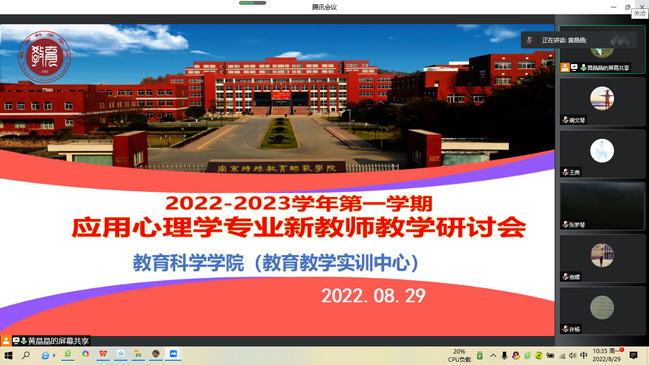 心理学系的新入职教师试讲活动则采用线上会议的方式进行,由心理学系主任黄晶晶主持,心理学系全体教师参加。承担心理系课程的4位新进教师以屏幕分享的方式呈现了15分钟左右的教学片段。教师们对所讲内容认真钻研,表达规范,声音洪亮,吐字清晰,体现出良好的专业素质和知识水平。心理学系全体教师围绕该教学片段进行广泛而深入的研讨,并给每位新进教师提出了宝贵的意见和建议。
