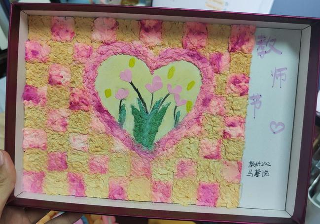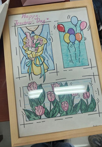 同学们为老师书写贺卡、绘制插画,发挥学前教育专业技能,手工制作精美的花束,每一件作品都表达了同学们对老师的感谢之情。9月9日下午,诸位员工代表前往各位老师办公室,手捧鲜花向老师们表达了最真挚的节日的祝福,感谢老师平时对员工们的教育。老师平日的谆谆教导,帮助同学们在大学得以进步与成长。老师们收到教师节礼物既惊喜又感动,语重心长地对同学们寄予厚望,希望同学们能够把对老师的这份感激之情转化为今后学习的动力,将来学业有成,回报社会。此外,2022级的大一新生们也参与了教师节寄语祝福活动,制作了精美的贺卡,纷纷表达了对恩师诚挚的祝福,正如同学们所说,老师们用爱心浇灌花朵,用双手播种希望,用智慧创造未来,他们是人类灵魂的工程师。