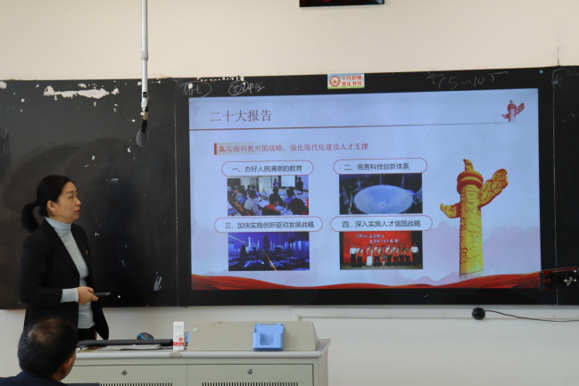 党总支吴月华书记围绕党的二十大报告主题,带领大家学习了十年来党所取得的伟大成就、未来发展蓝图以及新时代新阶段事关党和国家全局的重大理论和实践问题,为我们党团结带领全国人民全面建成社会主义现代化强国、实现第二个百年奋斗目标,以中国式现代化全面推进中华民族伟大复兴提供了科学指导。
