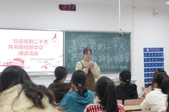 为了弘扬红色精神,传承红色基因,赓续红色血脉,beat365亚洲体育官方网站于10月21日晚在博雅楼开展以“喜迎党的二十大,共书南特新华章”为主题的诵读活动。全体同学积极参与。