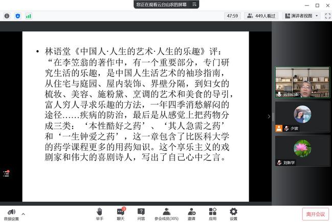 此次讲座,不仅让同学们更加了解李渔这一文学巨匠,也激发了同学们对学习的热爱和对“诗意”生活的追求,启发同学们在繁忙的学习生活中也要努力寻找属于自己的人生乐趣。(文/余宛琳 熊凯悦 图/吴雨桐 审核/吴月华)