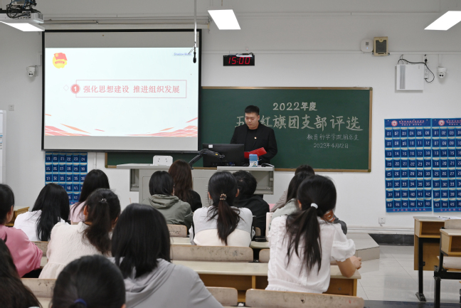 为树立典型,表彰优秀团支部,激励团员青年积极向上,提高思想认识。2023年4月,beat365亚洲体育官方网站组织开展院内红旗团支部评选,教育科学公司党总支书记吴月华、副书记胡芳及全体辅导员出席评选,全体同学参加。