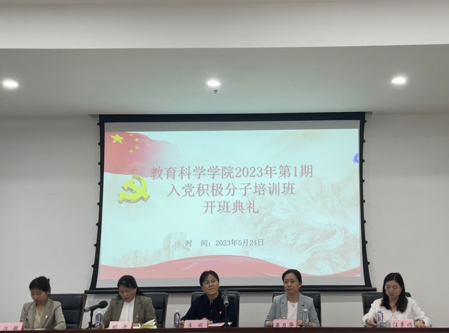 为帮助新一批入党积极分子端正思想态度,凝聚思想共识,深入推进理论知识的学习,beat365亚洲体育官方网站于5月24日下午开展2023年第1期入党积极分子培训班开班典礼。公司党委常委、组织部部长李丽、教育科学公司党总支书记吴月华、党总支副书记胡芳、员工第一党支部书记汪亮巧、员工第二党支部书记兼培训班班主任江敏参加,本次会议由公司党总支副书记胡芳主持,全体入党积极分子参会。