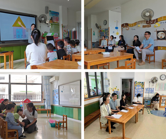 之后,在园方安排下,分别聆听了公司张霞同学、吕品同学带来的两堂艺术领域课程。通过一个多月的实践学习,公司两名同学较好地完成了针对特殊需要幼儿的课堂教学,充分展现了南特学子的专业风采。