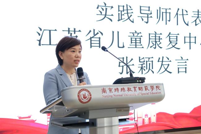 江苏省儿童康复中心张颖园长代表实践导师发言,向卓越班的全体同学表示祝福,希望同学们能学有所获,学有所成,学有所用,并对卓越班的发展作出了美好展望。姚妮老师作为理论导师代表发言,她希望同学们能保持身心的健康发展,平衡好学习与生活,同时,她代表全体导师承诺,全力支持和指导同学们的学习,帮助同学们提升专业学习效果,共度美好三年时光。卓越班员工代表郭书畅同学首先向全体领导与导师们的辛勤付出表达了感谢,她倡导在未来的日子里珍惜机会,明德至善,博学笃行,追求卓越。最后,刘新学经理分别为实践导师、理论导师颁发了导师聘书,全体师生合影。仪式最后,同学们与各自的导师进行了热烈讨论和交流。