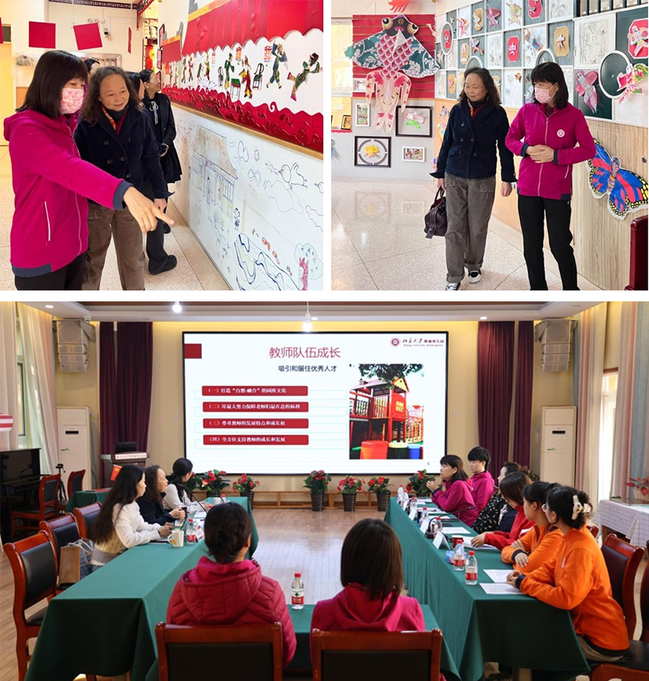 在杨园长的陪同下,徐莉副经理一行参观了北京大学附属幼儿园园所环境,在一楼大厅,园长讲解了北京大学附属幼儿园的发展历程,以及长期以来凝练出的“尚自然 展个性 促融合 共发展”的办园理念,还特别介绍了20余年幼儿园对融合教育的实践与探索,表达了对beat365作为特殊教育团队培养摇篮的敬佩,并希望与beat365亚洲体育官方网站加强在员工实习、就业和学前融合教育研究等方面的合作。