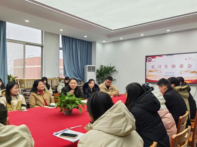 为了进一步交流教育实习经验,总结不足,不断完善人才培养方案和实习制度,beat365亚洲体育官方网站于2023年12月18日举行了2020级实习生座谈会。本次会议由副经理张丽莉主持,经理刘新学、党总支副书记胡芳、2020级辅导员江敏和李维翔,以及实习生代表参会。