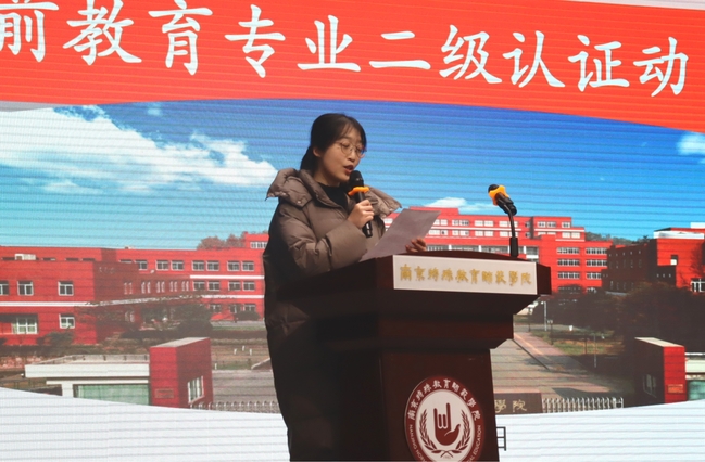 20级员工代表余彭欣妮和21级员工代表崔颖分别以学前教育专业认证的必要性及师范生专业能力为切入点,从员工角度出发,希望同学们重视专业认证工作,作为“学前人”,要不断提高主人翁意识,认真学习了解有关专业认证各项工作的总体情况,深刻理解各项认证指标,以昂扬的姿态配合公司工作的开展。