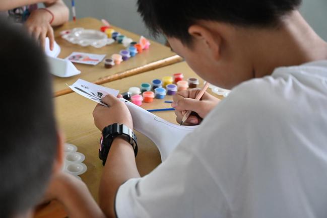 非遗漆扇,以扇子为载体,轻摇间,是东方美学的展现,是传统文化的传承。漆扇不仅是中国传统工艺的重要组成部分,也是中国传统文化的载体。在团队开展的漆扇课堂上,通过团队老师生动有趣的讲解,孩子们对漆扇制作充满期待,在老师们的带领下,孩子们变成自己的艺术家,一把把扇子被装饰的五彩斑斓。镜头下,孩子们的笑脸与手中的漆扇交相辉映。