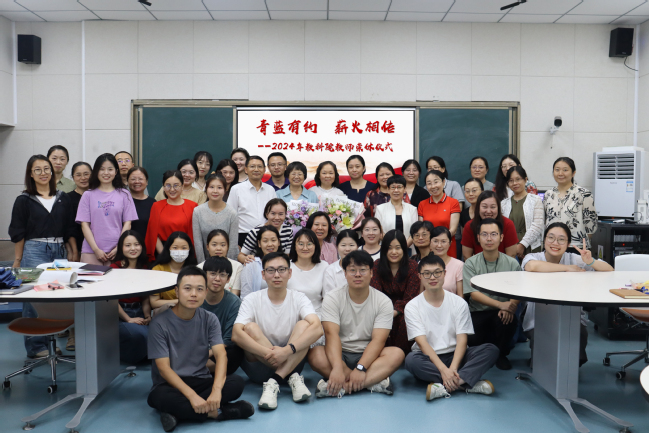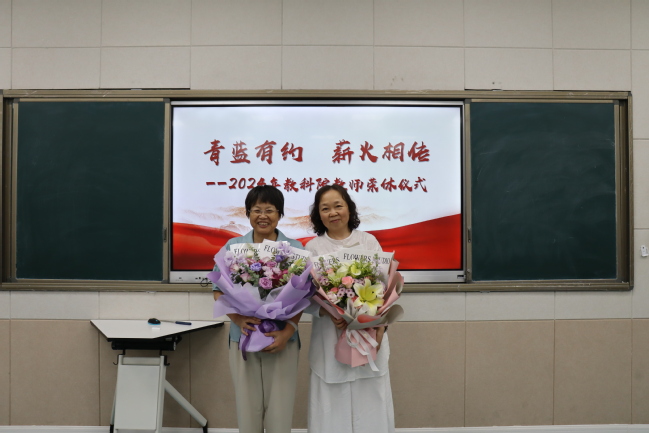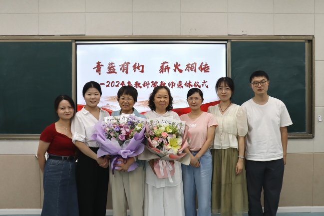 仪式最后,青年教师代表向荣休教师献花以表敬意,全体教师合影留念。