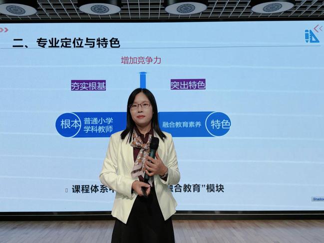 首先,赵文超老师从专业定位、培养目标、主要课程、毕业要求和实践关联矩阵等方面就小学教育专业2024版本科师范生人才培养方案进行详细解读,同时指出公司小学教育专业主要是融合教育特色,呼吁同学们明晰教师专业发展要求,增加核心竞争力,树立明确目标,潜心学习与实践,努力踏实完成学业,将来争做一名合格的人民教师。