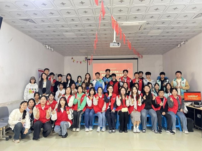 在与君子残疾之家的学员和老师们的交流沟通中,志愿者们了解到当地街道君子残疾人之家的帮扶政策以及君子残疾人之家创新就业方式方法不仅提升了志愿者们助残工作的认识,也增强了大家对助残事业的信心和热情。最后,各高校志愿者们手持横幅拍照留念,记录美好时刻。