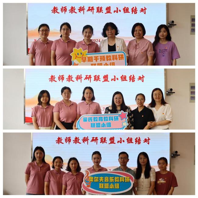 党建发起启动联合教研机制,支部与江苏省儿童康复研究中心开展教师教科研联盟小组结对,深化党建联建成效。强调优质课程引领,通过省级一流课程:早期干预(线下教学式)、特殊儿童发展与学习(线上线下混合式)、学前融合教育(实践类),借助一流课程立体化资源建设,结对共学共研。高校课程实施教师与一线康复教师的对话,助力构建更具活力、理论与实践互相促进的研究者共同体,提升双方教师自身解读实践逻辑的能力,在尊重科学规律和理论实践差异的基础上,共同探究残疾儿童早期康复的实践策略,全面打造特殊儿童产教融合精品课程群。共研共育共成长,早期干预教科研联盟小组、美育浸润融合共享,奥尔夫音乐教科研联盟小组、动手动脑促融合,蒙氏教科研联盟小组……一系列富有融合特色的活动应运而生。